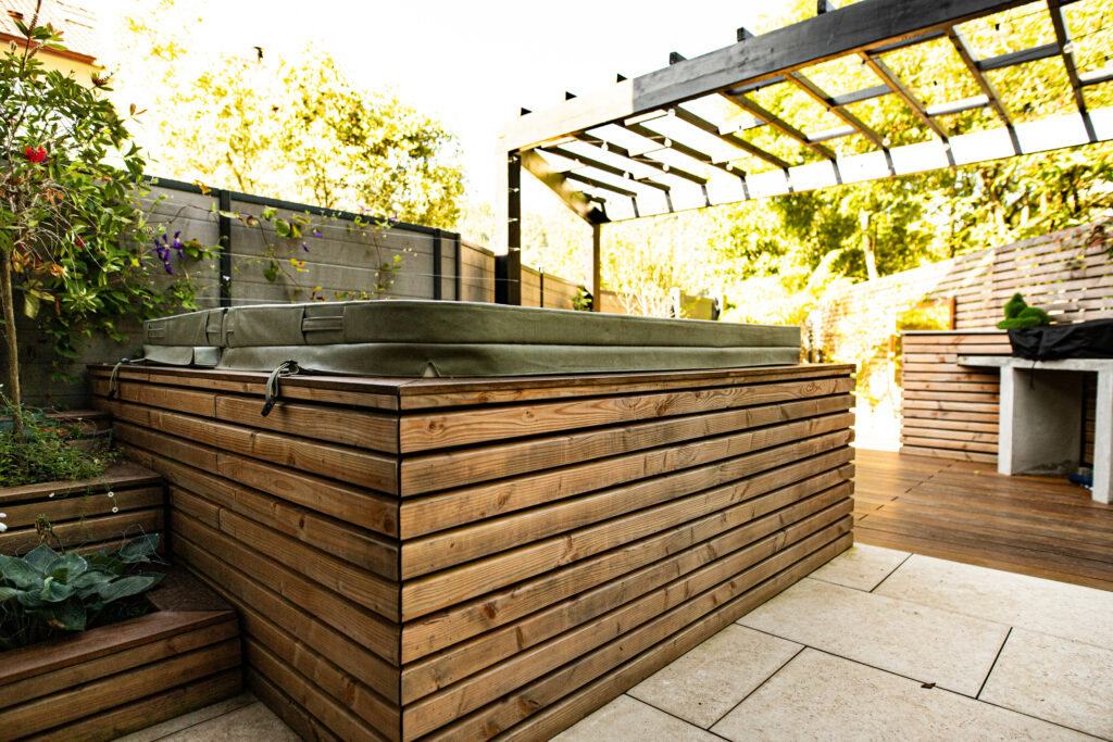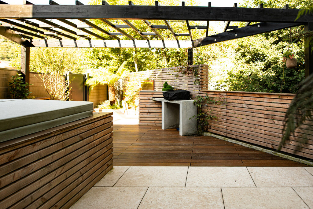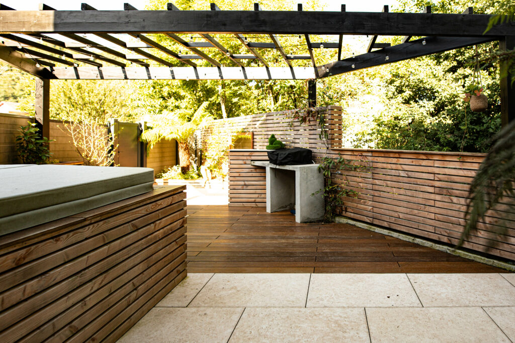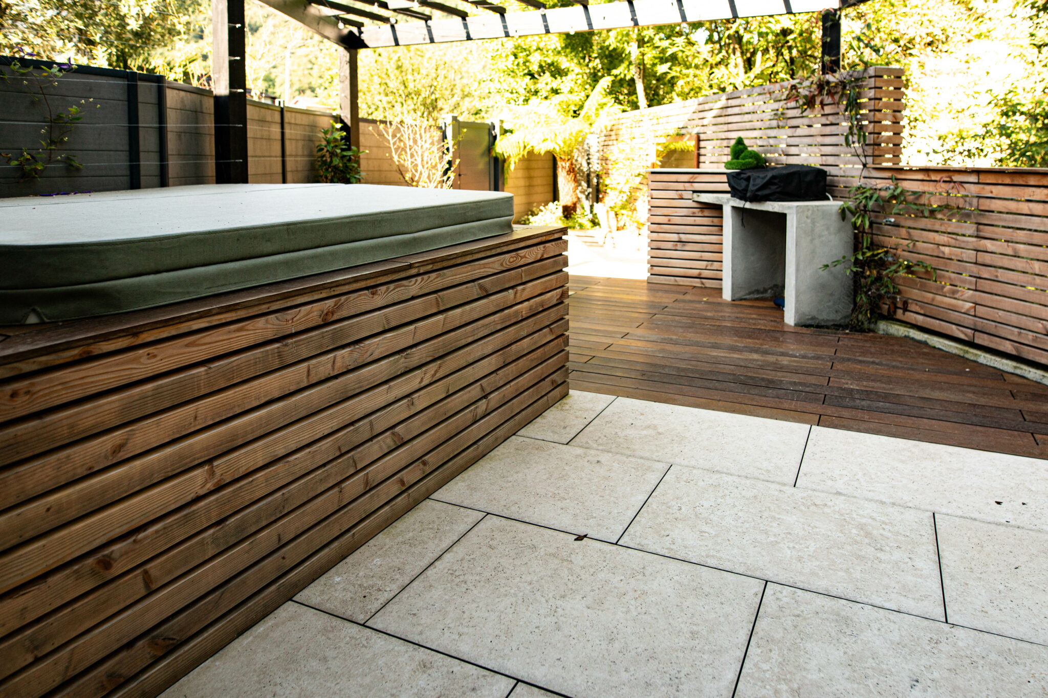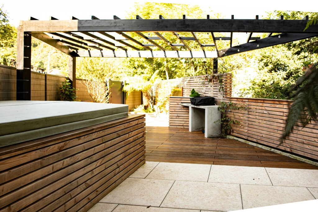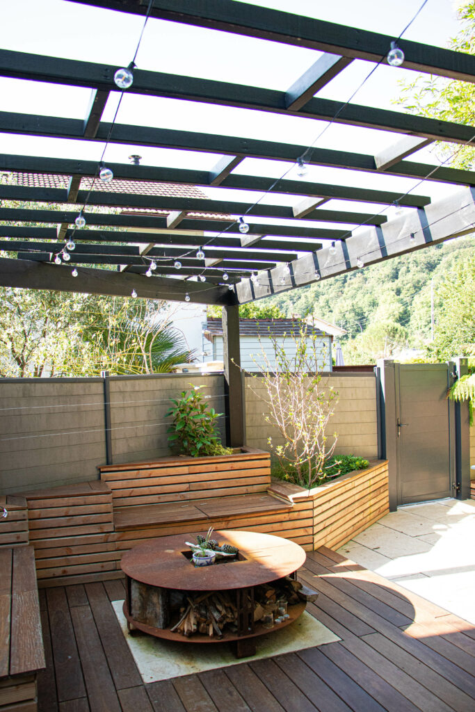 Conception et réalisation d’un espace de 70 m2, avec l’intégration d’un SPA et d’un Brasero.