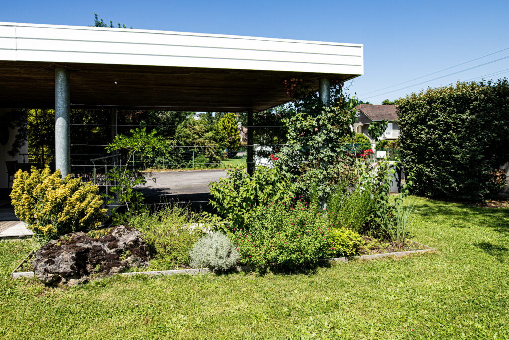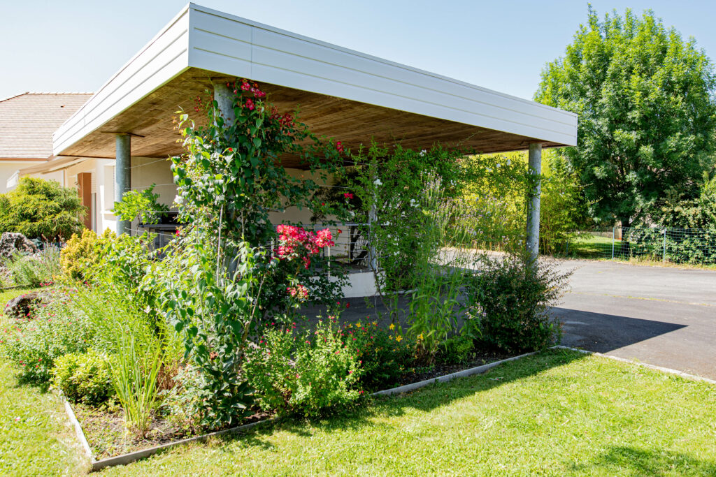 Gestion du visuel sur la voiture par la pose de câble ou vont se développer des plantes grimpantes.